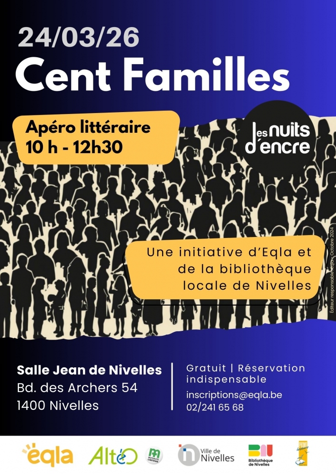 Dans le cadre du festival "Les Nuits d'encre" ayant pour thème Familles choisies nous vous attendons pour un nouvel Apéro littéraire à Nivelles !