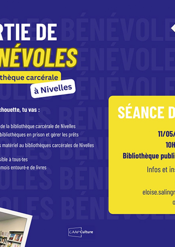 > En savoir plusSi vous souhaitez, à raison d'une matinée par mois, aider à la mise en place de la bibliothèque carcérale de Nivelles, tenir des permanences en prison et gérer les prêts de documents, n'hésitez pas à vous inscrire à notre séance d'information !
