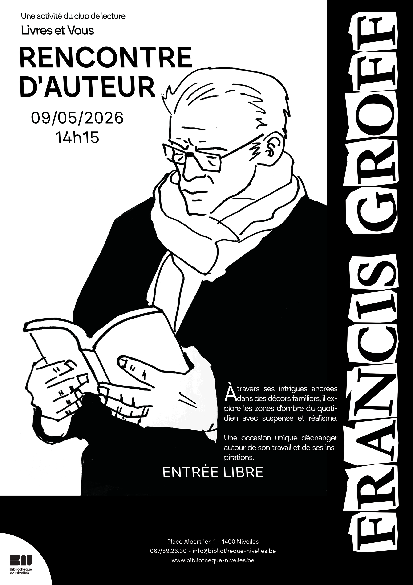 Le club de lecture « Livres et vous » vous invite à rencontrer Francis Groff.