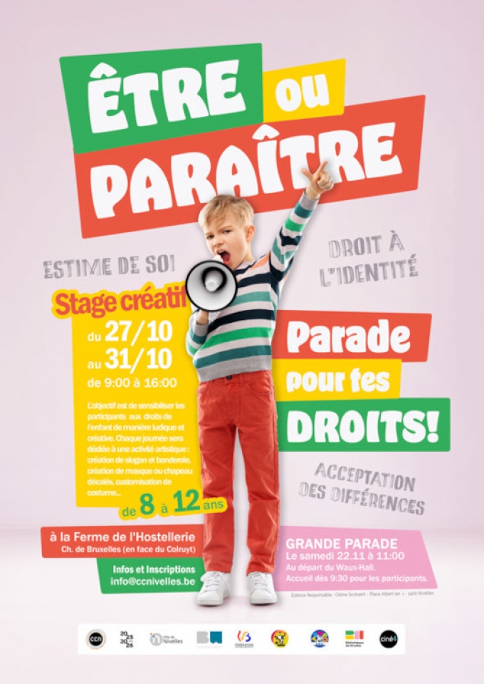 Durant les congés de Toussaint, le Centre culturel de Nivelles et l'A.M.O. Tempo, en collaboration avec la Ville de Nivelles et la Bibliothèque publique locale de Nivelles, proposent un stage créatif aux enfants âgés de 8 à 12 ans, afin de préparer la parade du samedi 22 novembre 2025, qui aura lieu à quelques jours de la Journée internationale des droits de l'enfant.