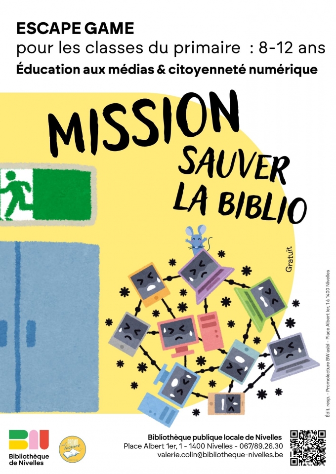 > En savoir plusLa Bibliothèque de Nivelles propose aux classes du primaire (à partir de 8 ans) une animation originale : l’escape game « Sauver la bibliothèque ! », conçu pour développer l’esprit critique et favoriser de bons réflexes face au numérique.